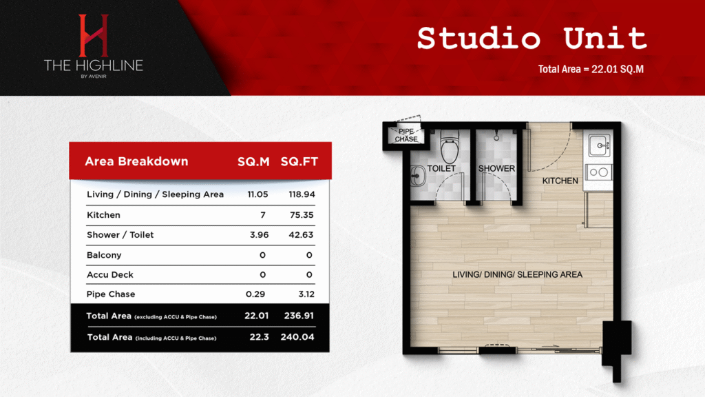 This 23-storey residential-commercial building is designed to cater to the lifestyle and busy schedules of young urban professionals. THE HIGHLINE prioritizes a healthy work-life balance for its unit owners, ensuring everything they need is within reach.
